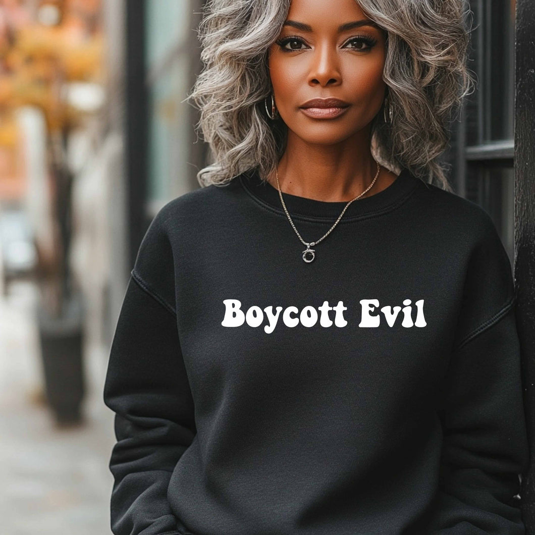 "Make a statement with the Boycott Evil T-Shirt. Made of high-quality cotton, this screen-printed shirt is the perfect way to show your commitment to boycotting evil. Take a stand in comfort and style."