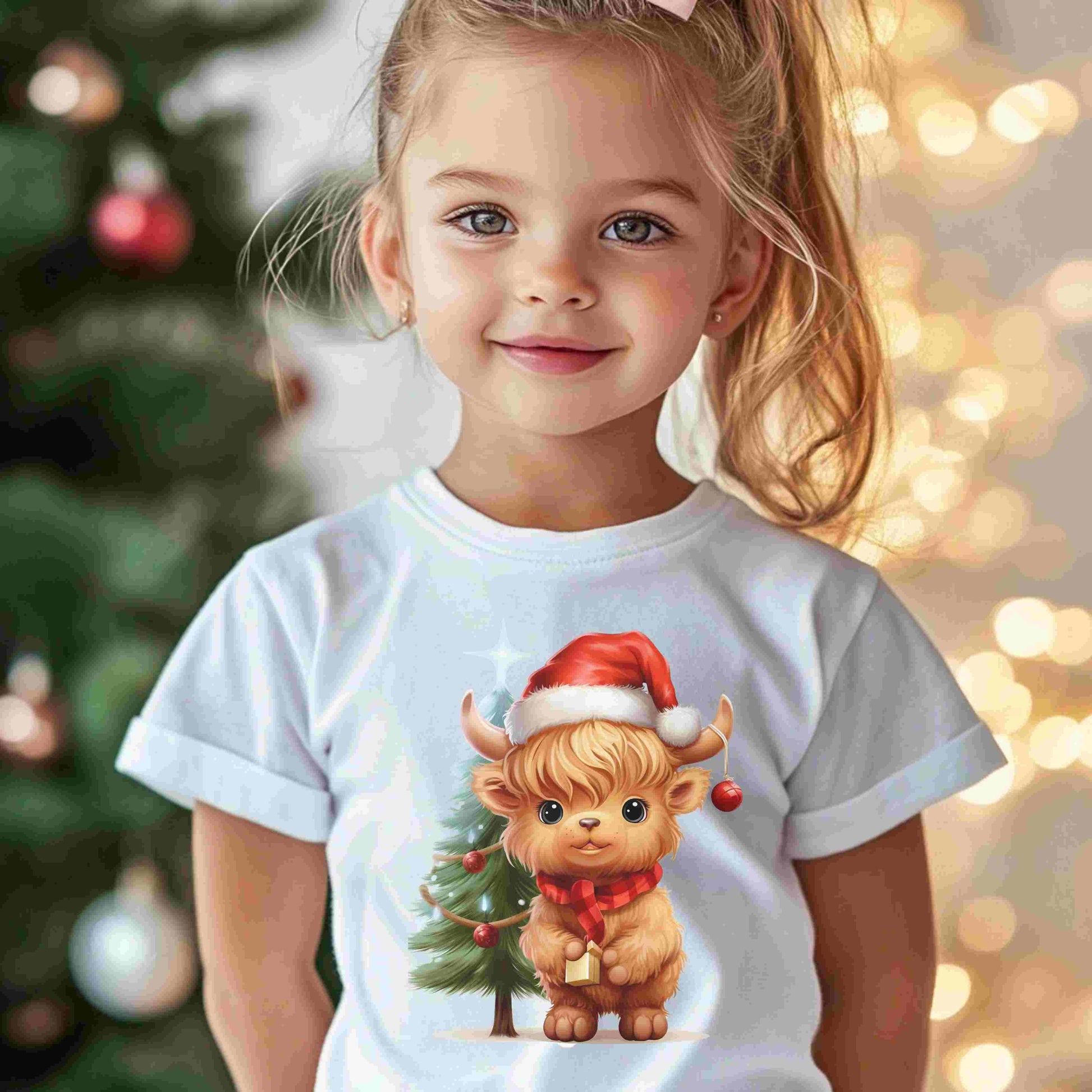 Highland Christmas Cow with Christmas Tree Infant Fine Jersey Tee