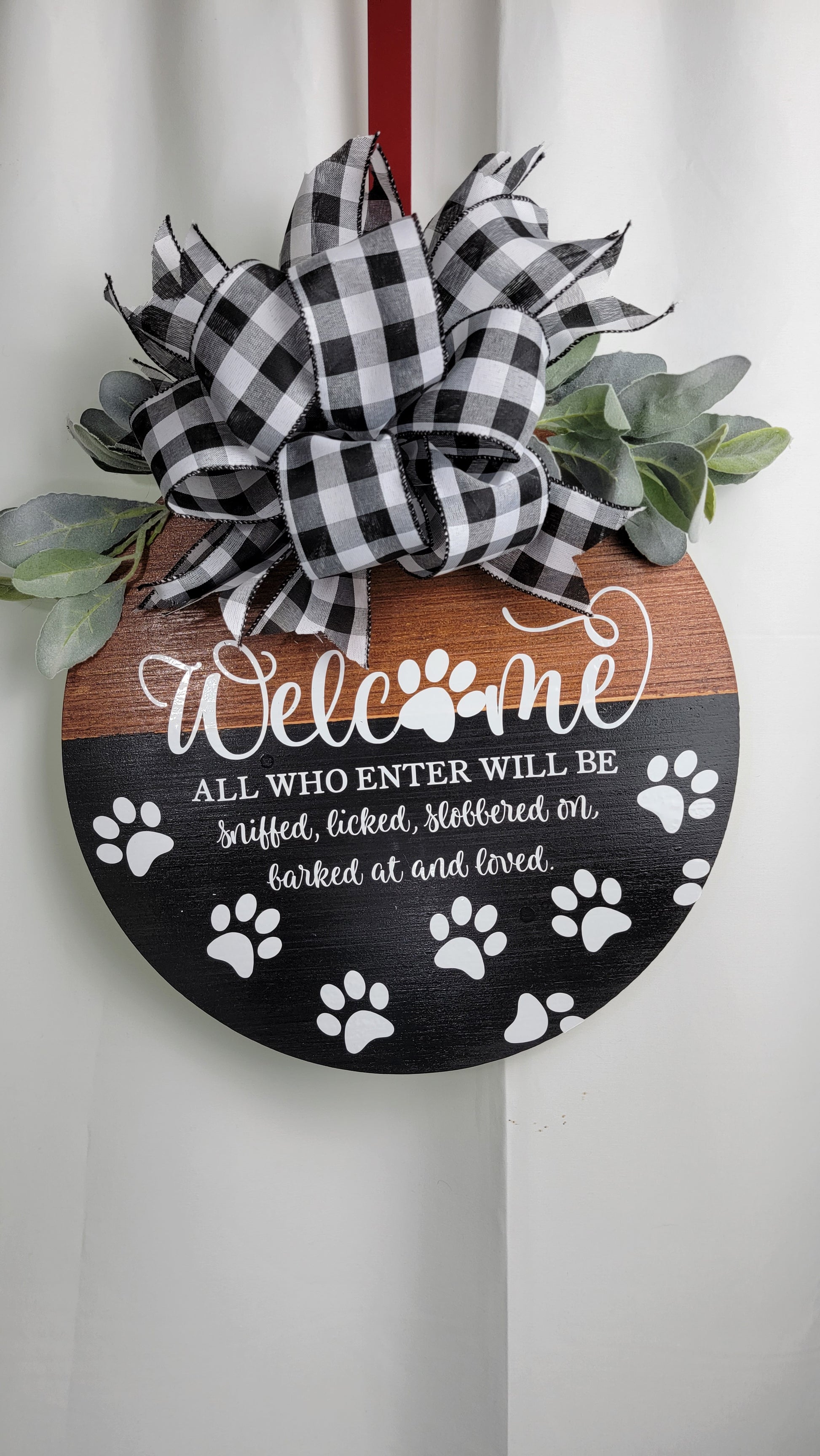 15 inch in diameter Welcome sign for the fur babies in your home.