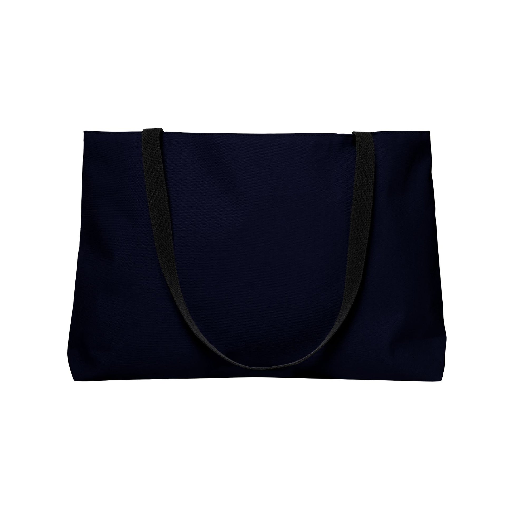 A sophisticated and stylish weekender tote bag featuring a woman in black design. Perfect for women who love to travel in style. Ideal for weekend getaways, beach trips, and overnight stays.