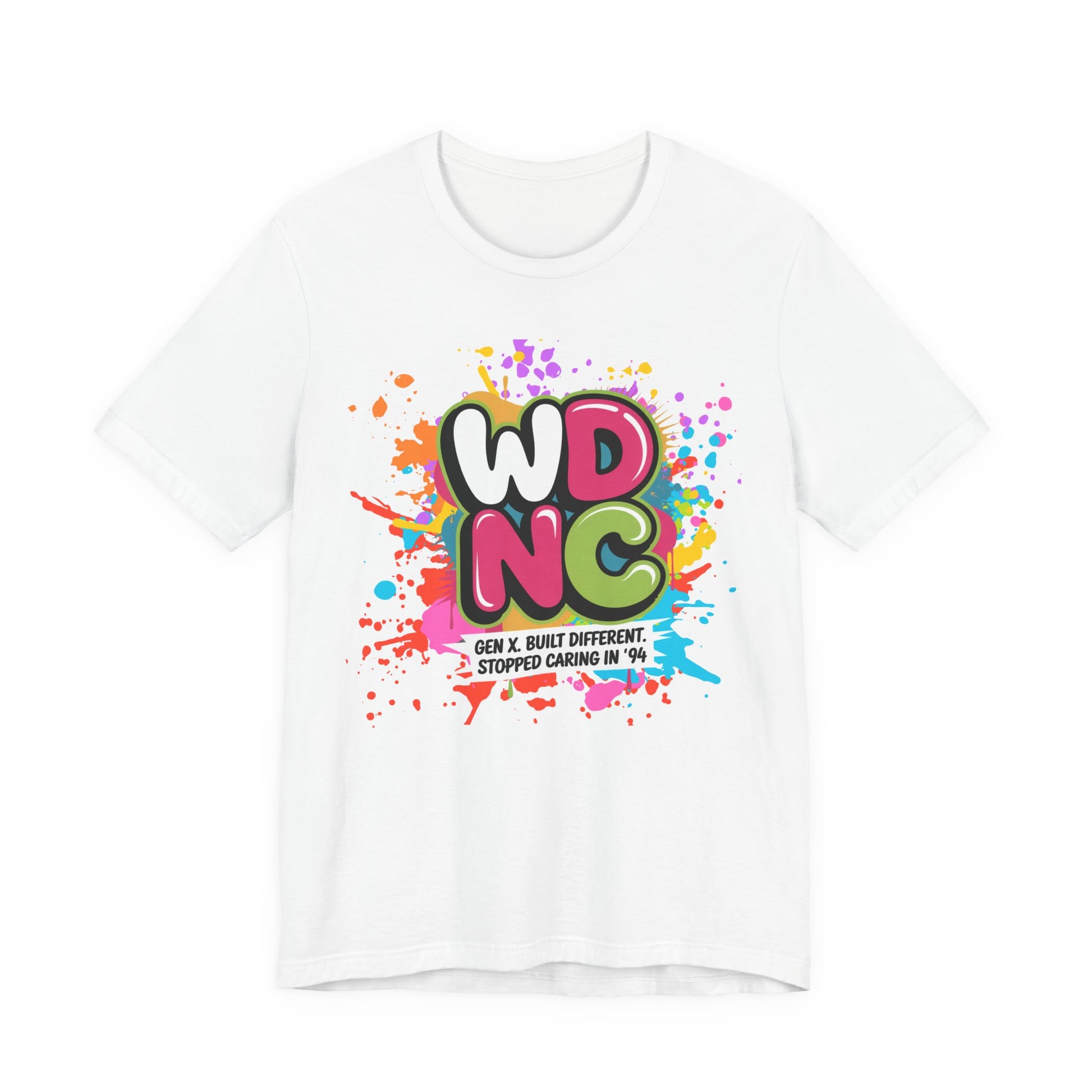 Say it without saying it. The WDNC (We Do Not Care) T-Shirt and Hoodie is the ultimate salute to Gen X’s no-nonsense, unbothered attitude. Made for the generation that survived dial-up internet, drank from water hoses, and didn’t need validation—this design brings bold rebellion with retro style. Featuring the bold acronym WDNC front and center, this shirt/hoodie keeps it real with a clean or grunge-inspired aesthetic (your choice!), perfect for everyday wear or that next throwback party. Soft, durable, and unapologetically honest—just like Gen X. Embrace your individuality with this versatile Unisex Jersey Short Sleeve Tee, perfect for casual outings or relaxed gatherings. Its soft, breathable fabric offers a comfortable fit, making it an ideal choice for day-to-day wear. The vibrant design adds a fun twist, making it suitable not just for everyday use, but also for celebrations, parties, and casual holiday festivities. Whether you're gifting it to a friend or enhancing your own wardrobe, this tee speaks to anyone who values style and comfort alike. It's not just clothing; it’s a statement piece for those who dare to stand out. Product features - Designed with side seams for structural support and lasting shape. - Features a ribbed knit collar that retains shape and offers flexibility. - Shoulder tape enhances stability, preventing any stretching. - High-quality printing techniques ensure vibrant, detailed designs on sleeves and labels. - Crafted from 100% Airlume combed and ring-spun cotton for lightweight comfort. Care instructions - Machine wash: cold (max 30C or 90F) - Non-chlorine: bleach as needed - Tumble dry: low heat - Iron, steam or dry: medium heat - Do not dryclean