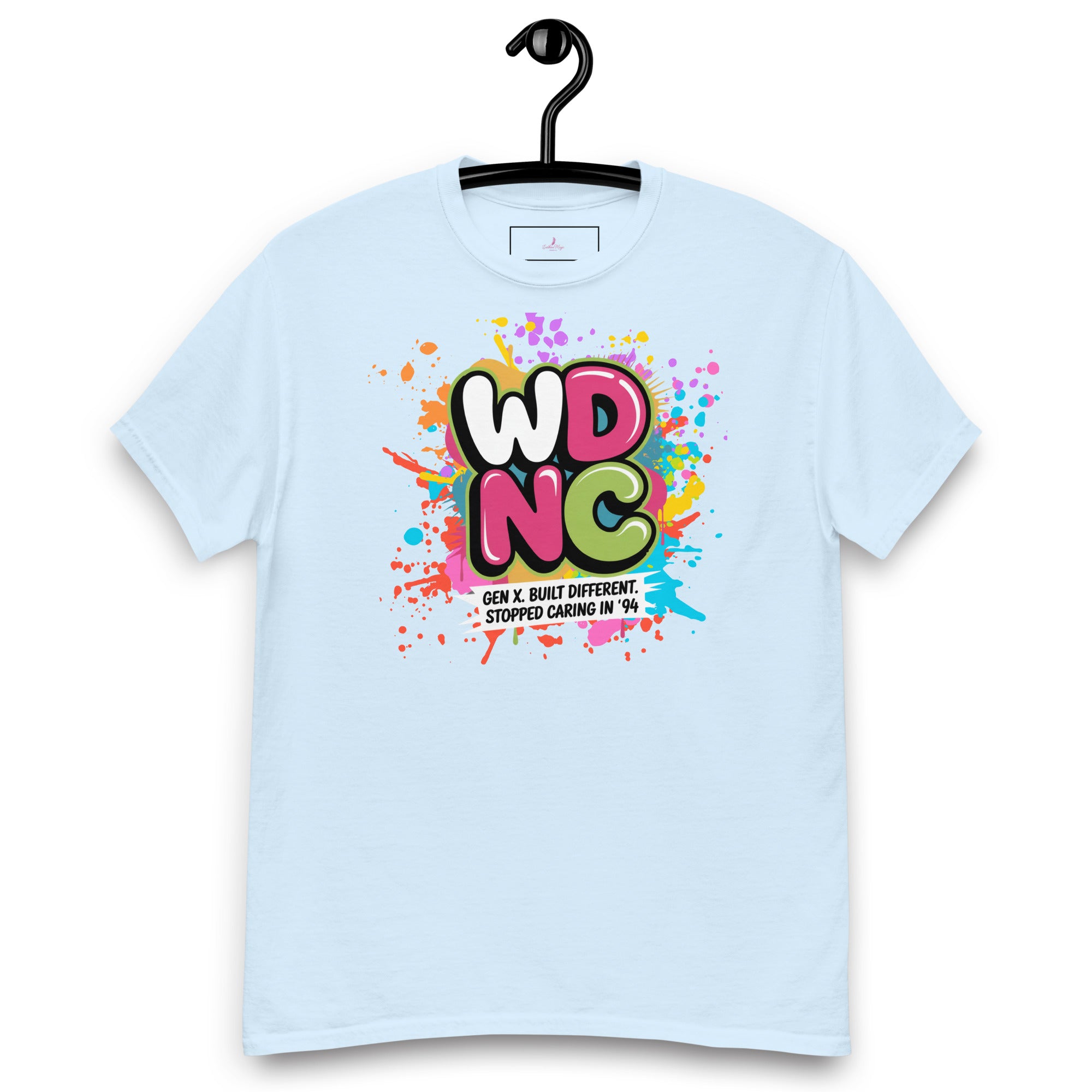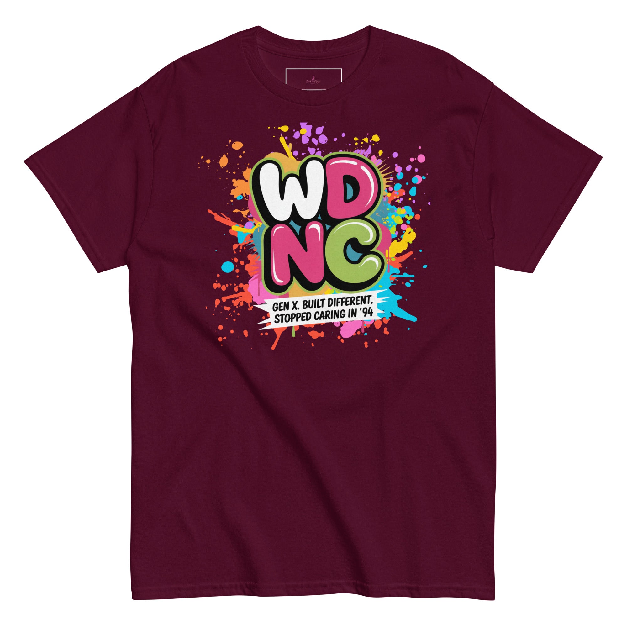 Featuring the bold acronym WDNC front and center, this shirt keeps it real with a grunge-inspired aesthetic, perfect for everyday wear or that next throwback party. Soft, durable, and unapologetically honest—just like Gen X.