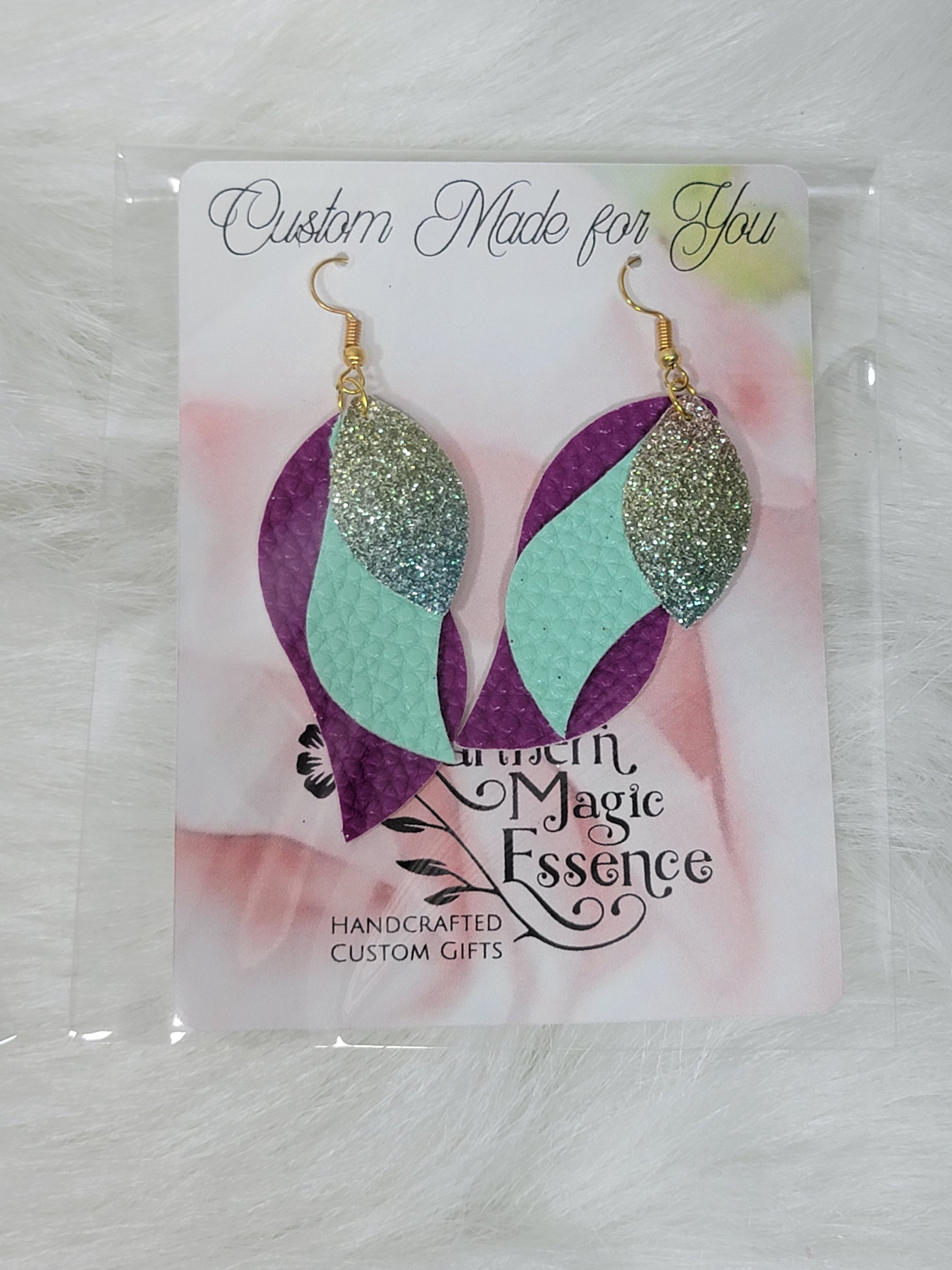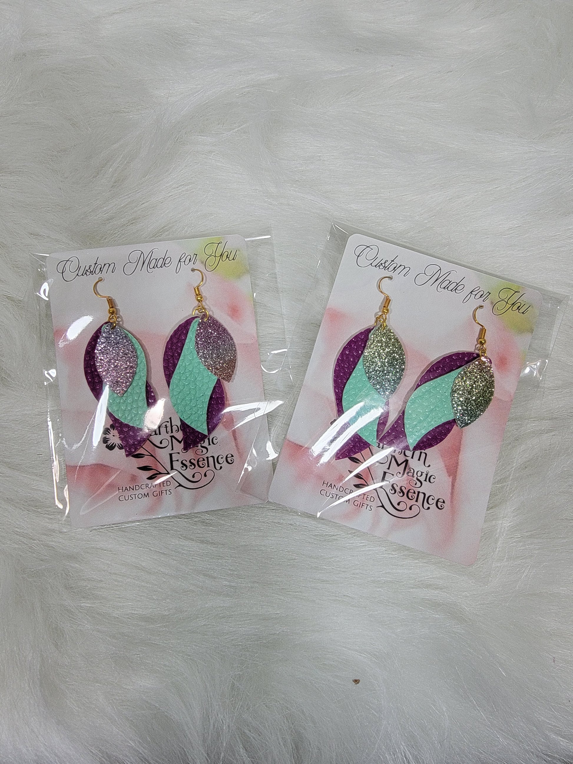 These 3 layered earrings are beautiful. You have the raspberry and the mint with a glittered Ombre piece on top to add that "Pop".