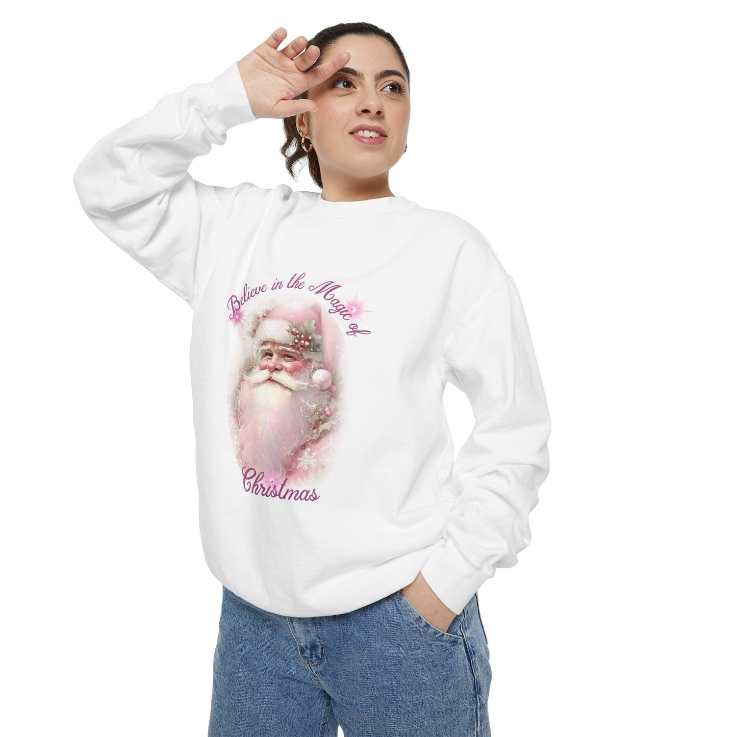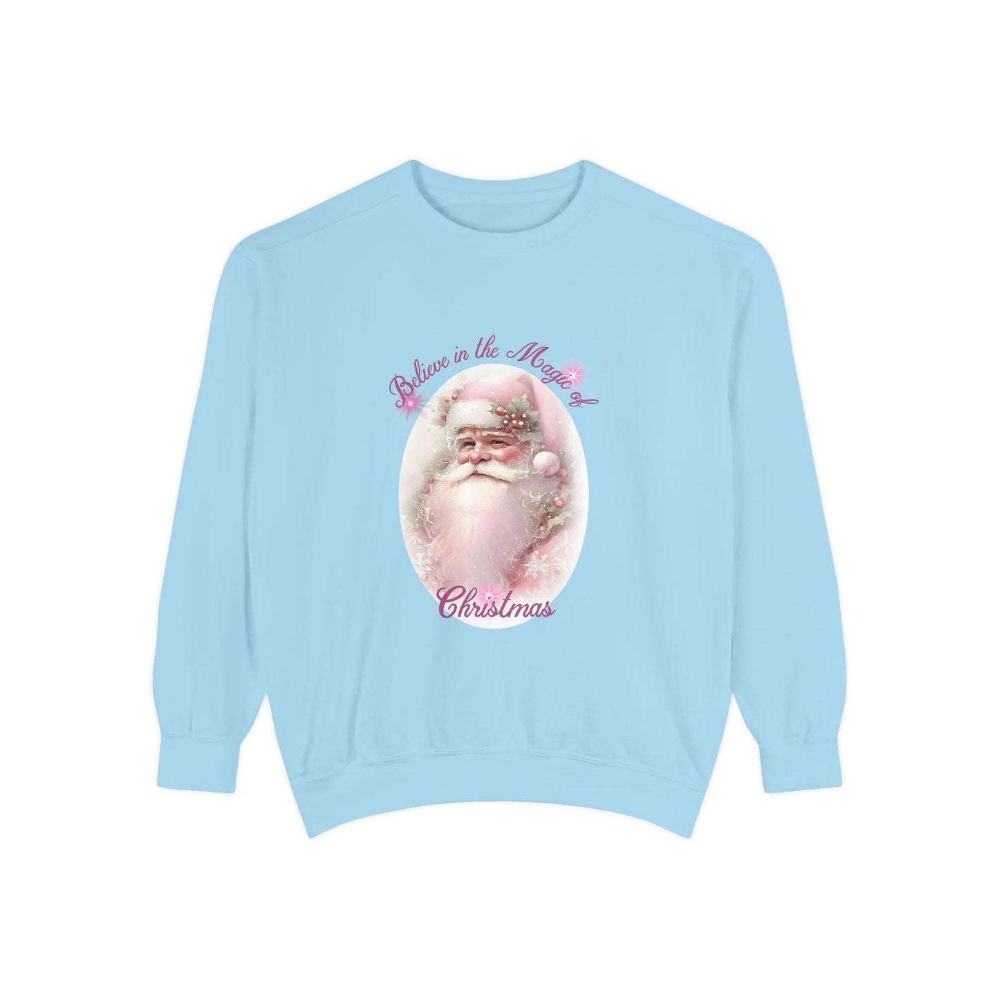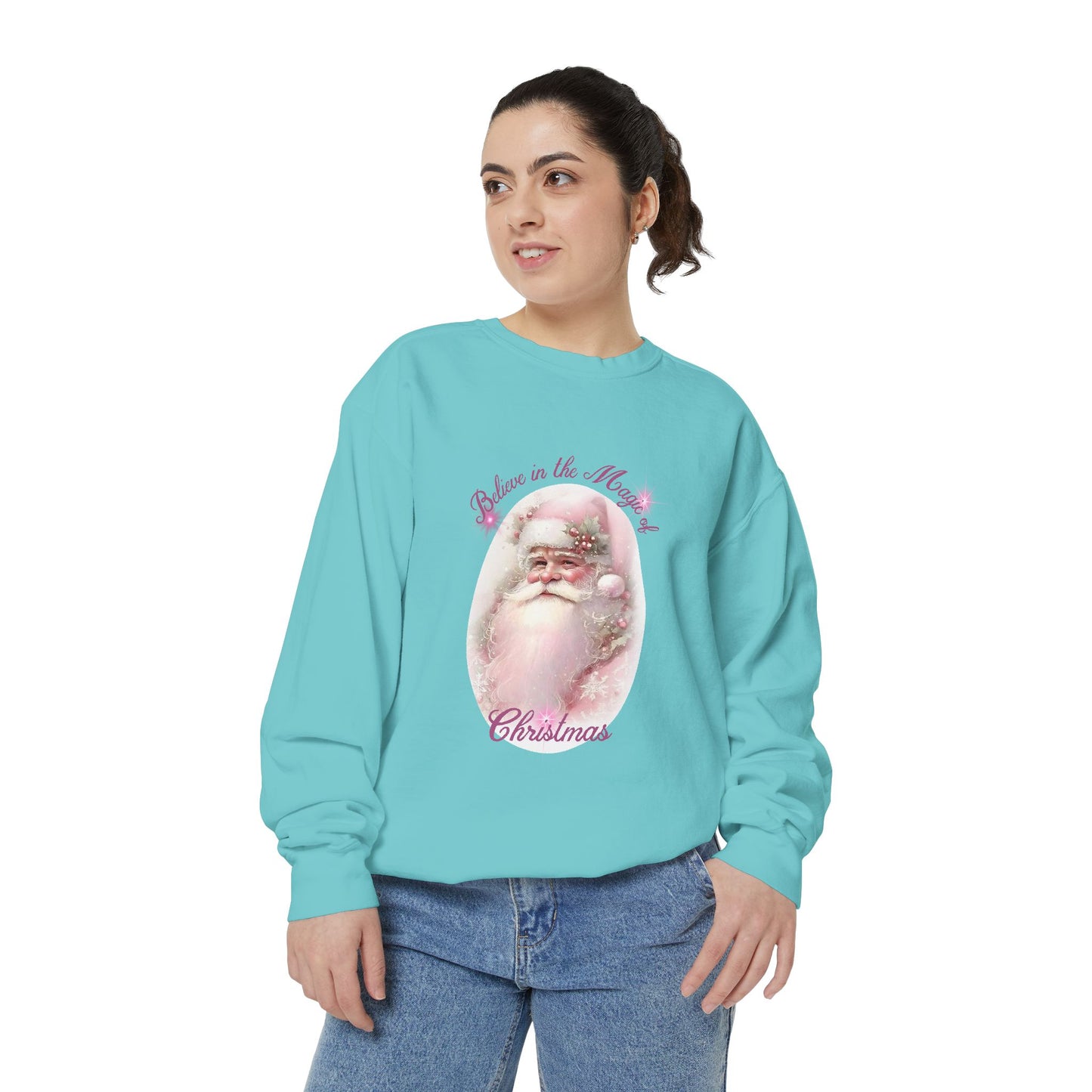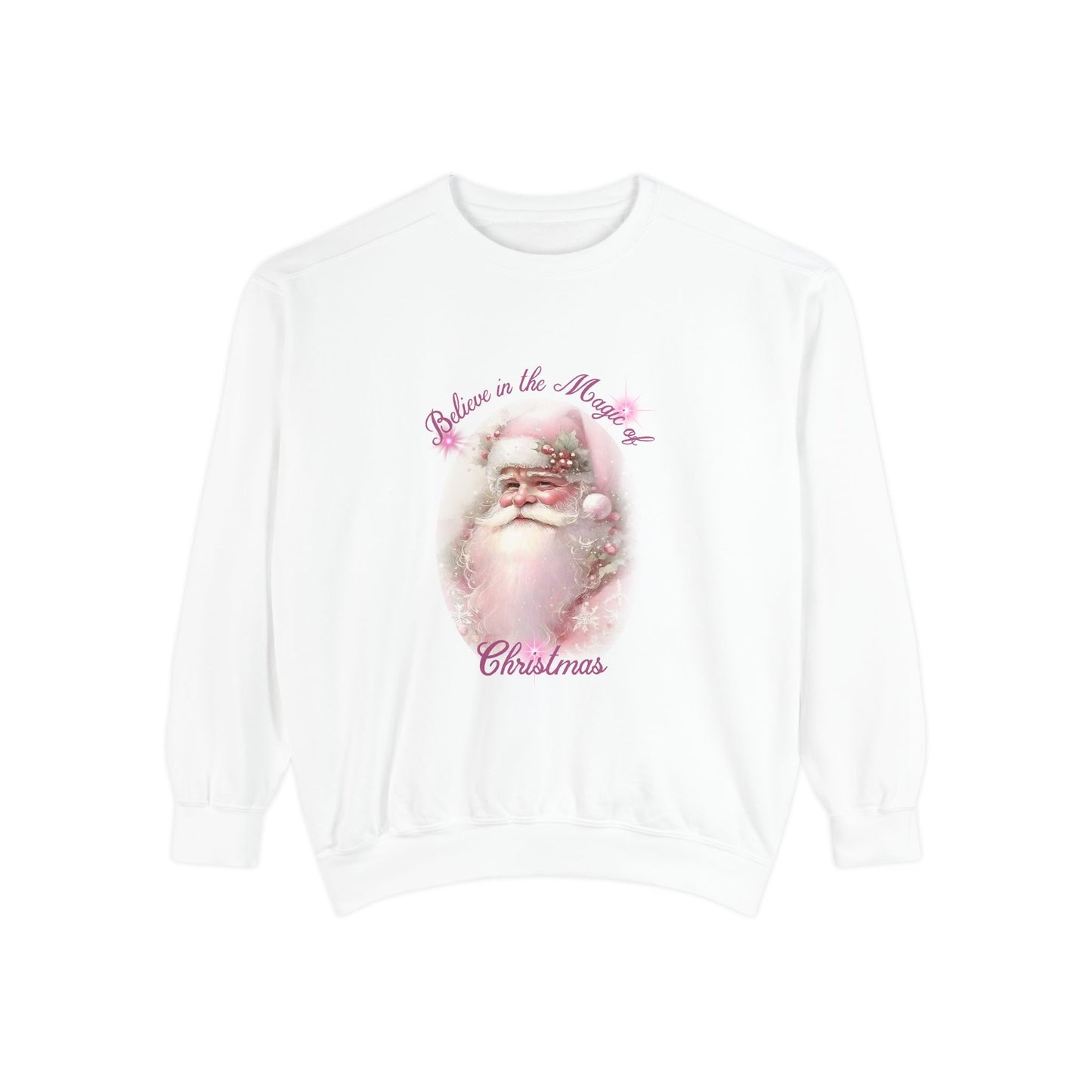 This Santa-themed pink unisex sweatshirt is perfect for spreading Christmas wishes during the holiday season. The festive design adds a cheerful vibe and is relevant to those who love celebrating Christmas.