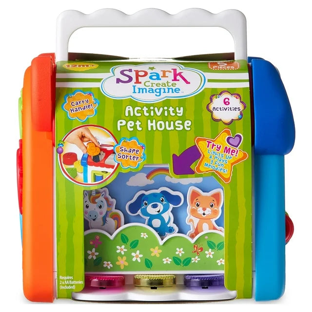 The Spark Create Imagine Activity Pet House will have your toddler entertained for hours. This toy is designed for kids 12 months and older and has features six fun activities with immersive lights and melodies for your little one to enjoy. With a variety of different hands-on activities and puzzles, this toy encourages color identification, fine motor skills, and hand-eye coordination. It also has a built-in handle, so it's easy to take with you on road trips or to the park. Keep your toddler happy and engaged with the Spark Create Imagine Activity Pet House.